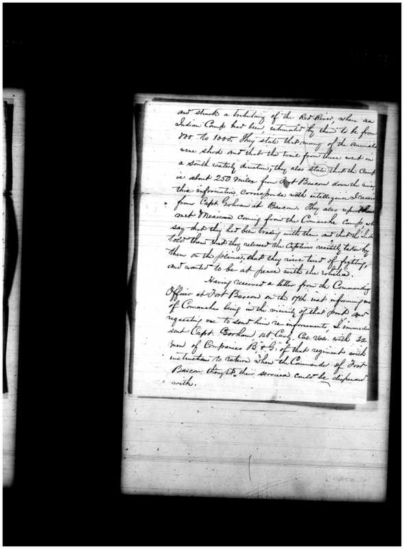 Letter from Henry B. Bristol to R. Lusby, September 30, 1864 Search Title Letter from Henry B. Bristol to R. Lusby, September 30, 1864 Creator Bristol, Henry B. Year 1864 Document Type correspondence Place Fort Sumner (N.M.) Date September 30, 1864 Repository National Archives and Records Administration Collections, Series, Record Groups, and Microfilm Publications Letters Received, 11/1862 - 7/1869 Record Group 393: Records of U.S. Army Continental Commands, 1817 - 1947 M1512: Headquarters Records of Fort Sumner, New Mexico, 1862-1869. of 1 1–4 of 4 Layout Sort Position Last edited Last completed Last approved Ascending Descending Sort Filter No filter Is edited Is not edited Is completed Is not completed Is approved Is not approved Filter Show original titles Page Last transcribed Status #1 Auto-Scan096.jpg Transcribe Not transcribed New #2 Auto-Scan097.jpg Transcribe Not transcribed New #3 Auto-Scan098.jpg Transcribe Not transcribed New #4 Auto-Scan099.jpg Transcribe Not transcribed New Page 1 Last transcribed Not transcribed Status New Transcribe Page 2 Last transcribed Not transcribed Status New Transcribe Page 3 Last transcribed Not transcribed Status New Transcribe Page 4 Last transcribed Not transcribed Status New Transcribe